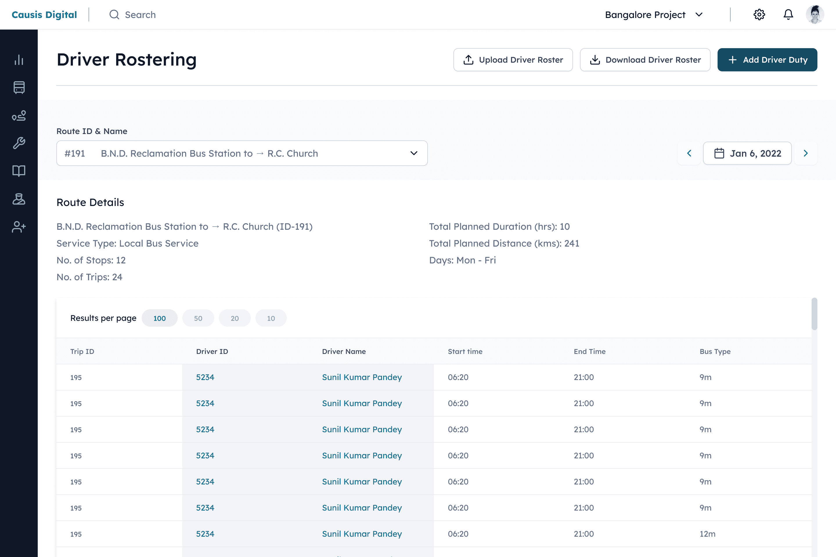 Centralized Duty Management: Upload, download, and view all driver schedules in a single table filtered by route and date
