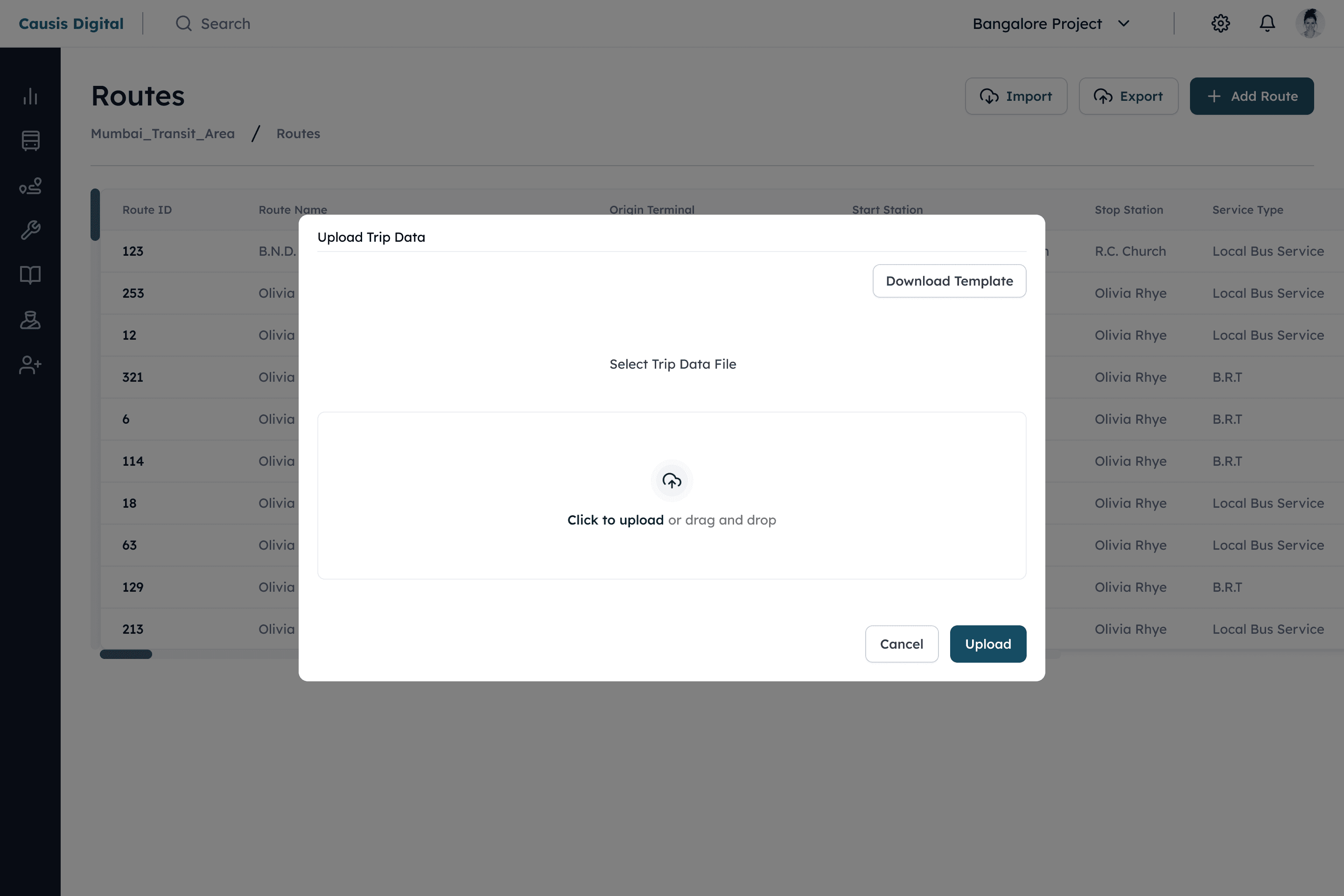 Efficient Bulk Operations: Upload/download entire datasets for routes, trips, drivers, and vehicles in one action
