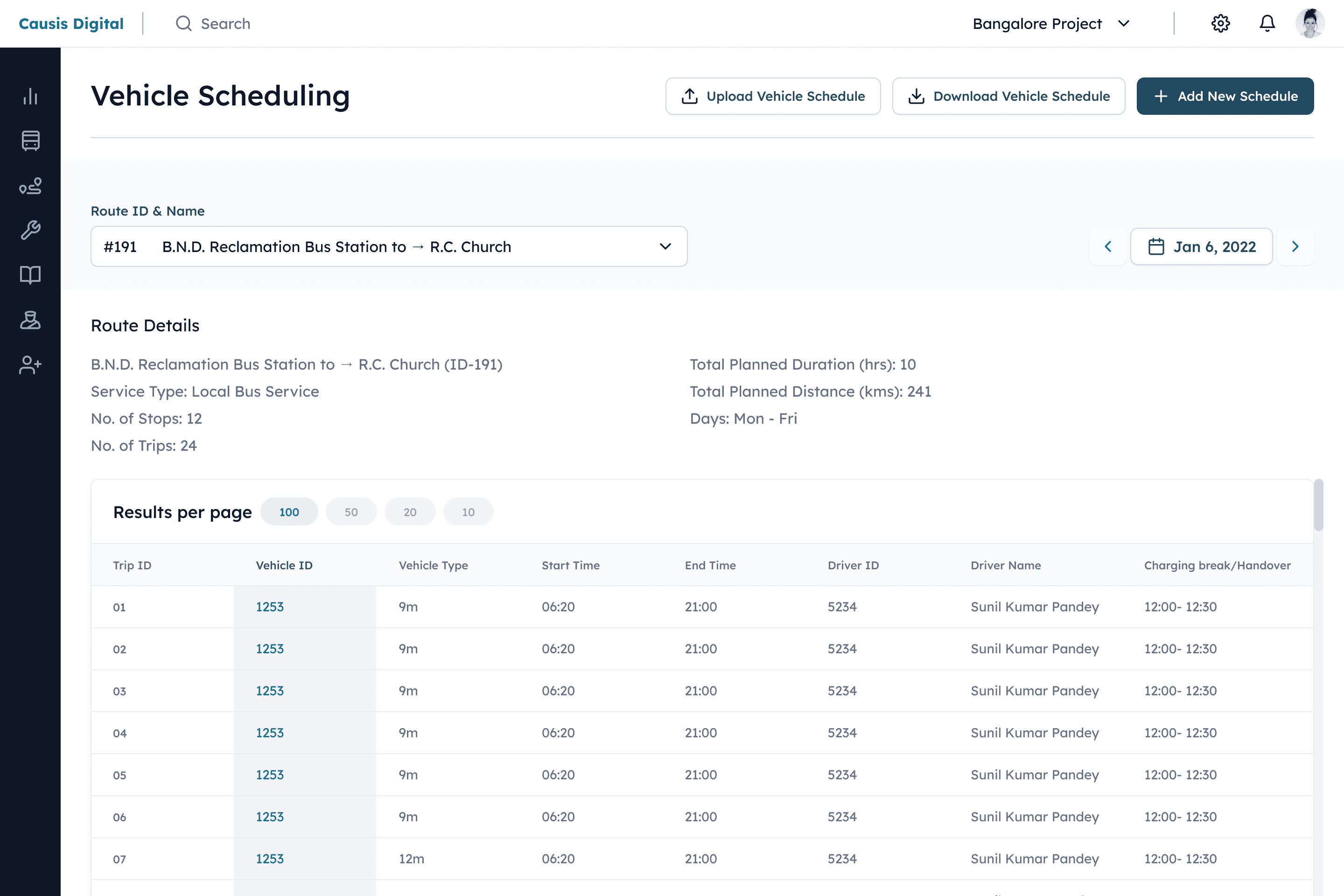 While platforms existed for managing fuel-based bus fleets, there was no efficient system for electric bus fleets. Operators struggled to plan routes, schedule vehicles, and assign drivers while accounting for unique constraints like battery range, charging time, and driver availability. This gap led to inefficiencies, increased errors, and wasted time in daily fleet operations.