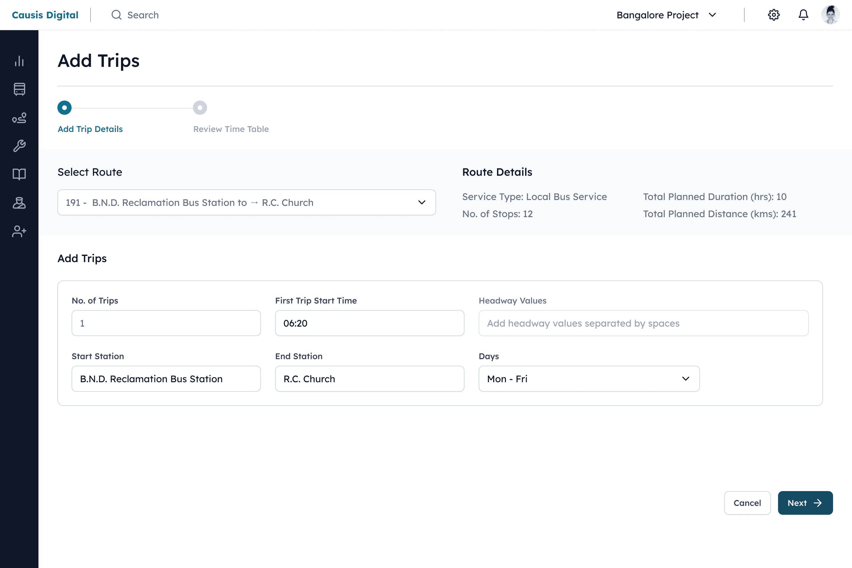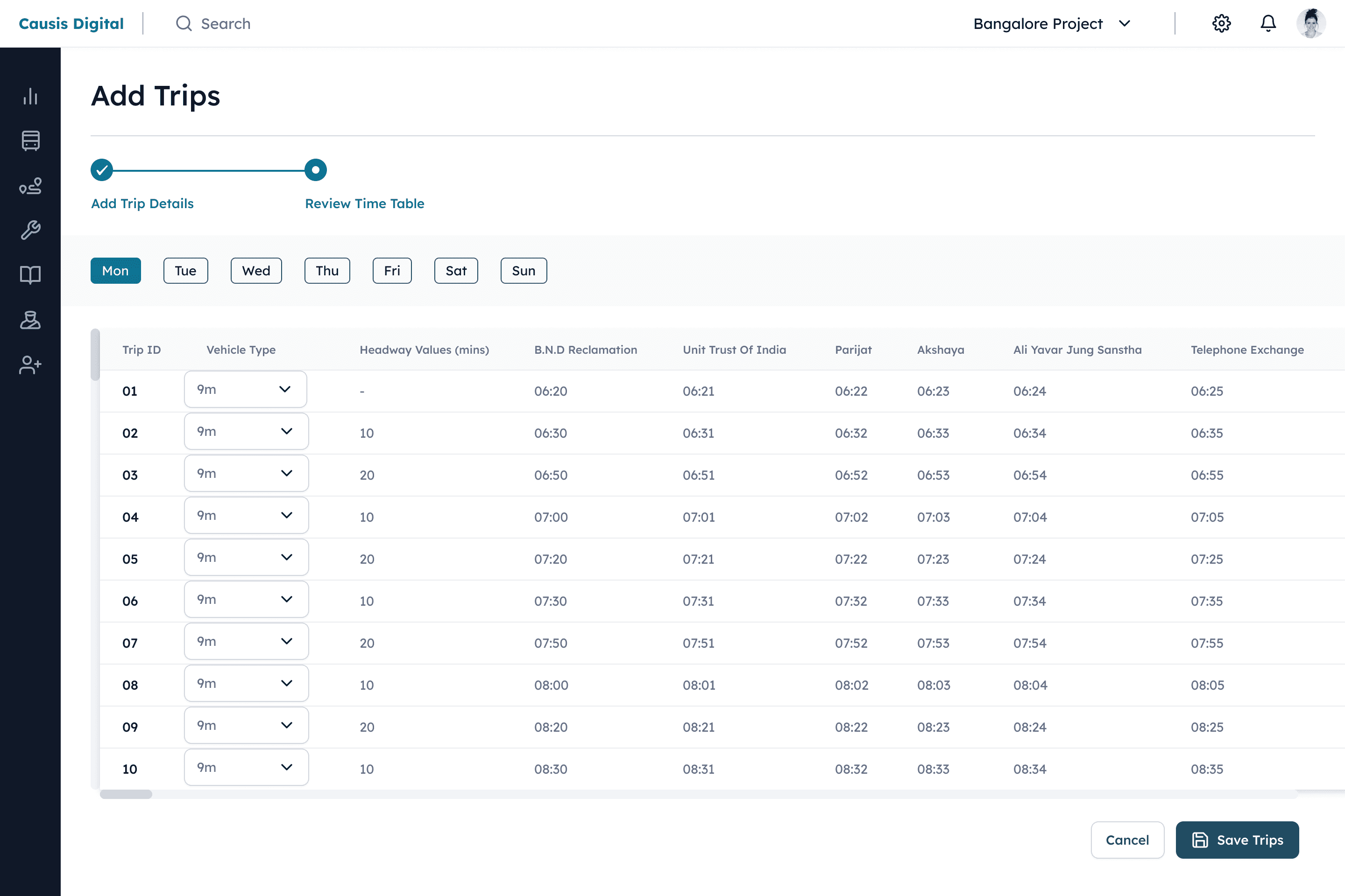 Automated Scheduling: Generate recurring trips instantly using headway-based calculations