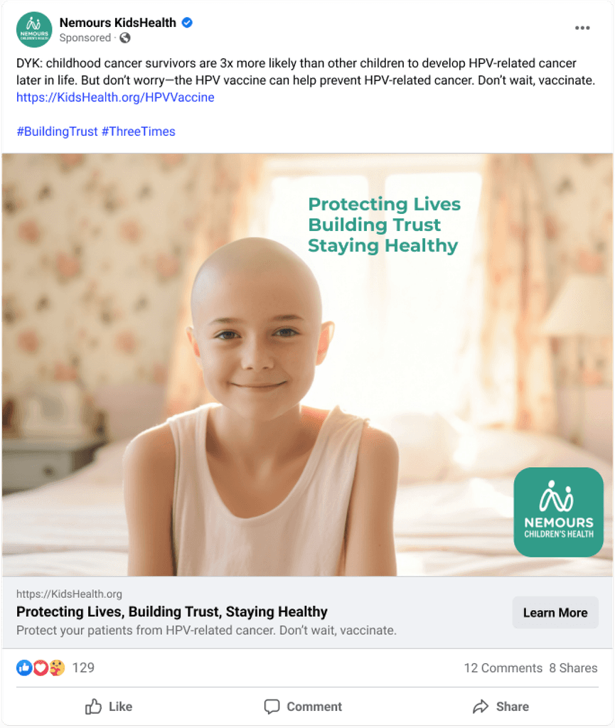 Video Advertisements: Short, engaging video ads featuring real stories from parents, survivors, and doctors to build trust and emotional connection.