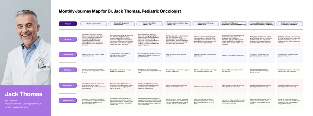 Journey maps along with personas helped to identify gaps in communication and emotional triggers influencing decision-making.