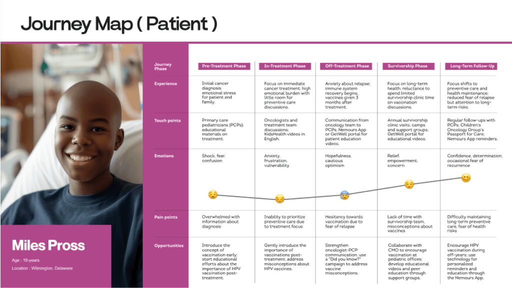 These solutions enhance HPV vaccine awareness, accessibility, and adoption, improving pediatric oncology patient outcomes. Next phase of the project would allow the stakeholders to use the research we conducted and test the solutions we proposed.